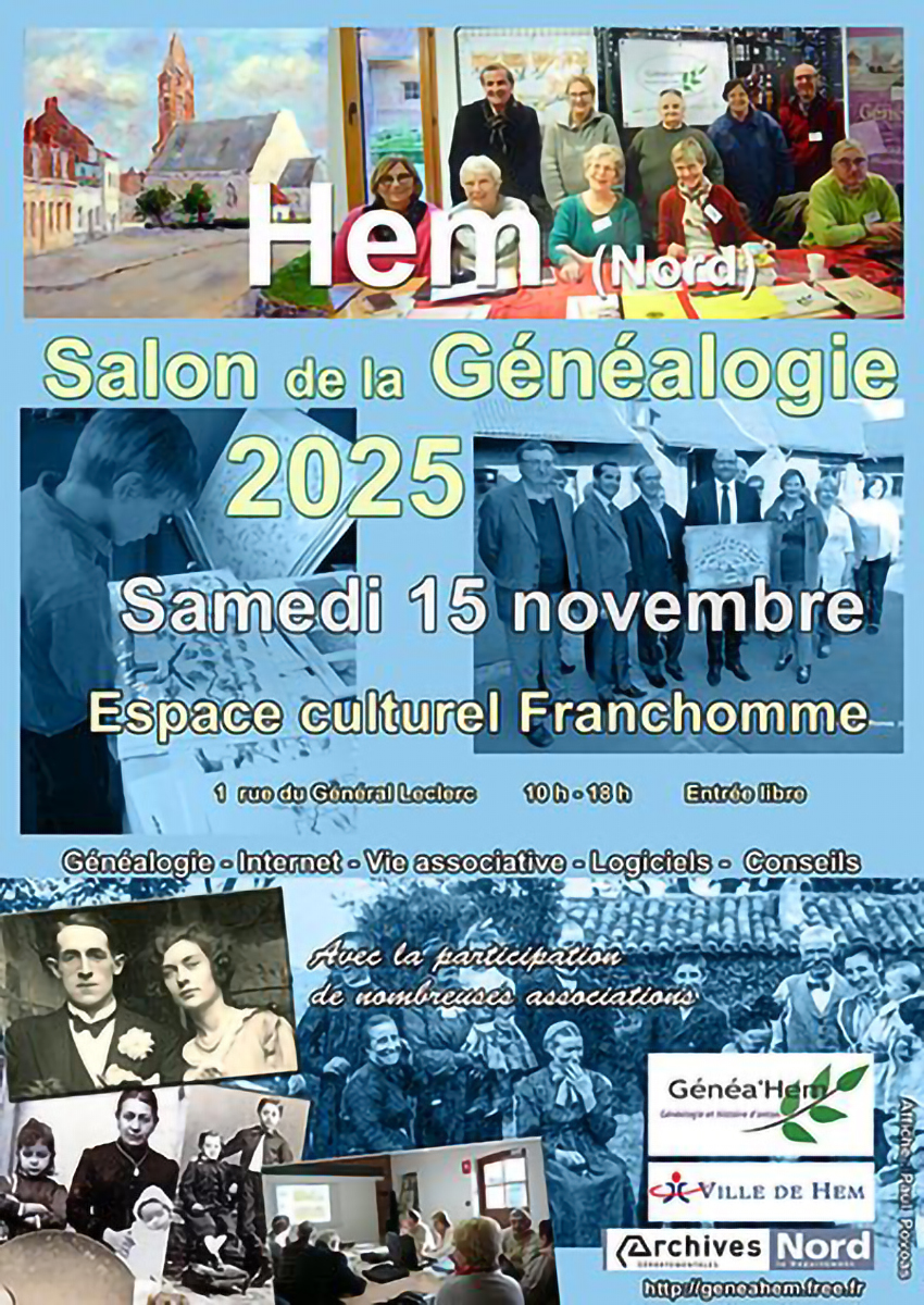Le GGRN sera présent le samedi 15 novembre au salon de la Généalogie d’Hem.